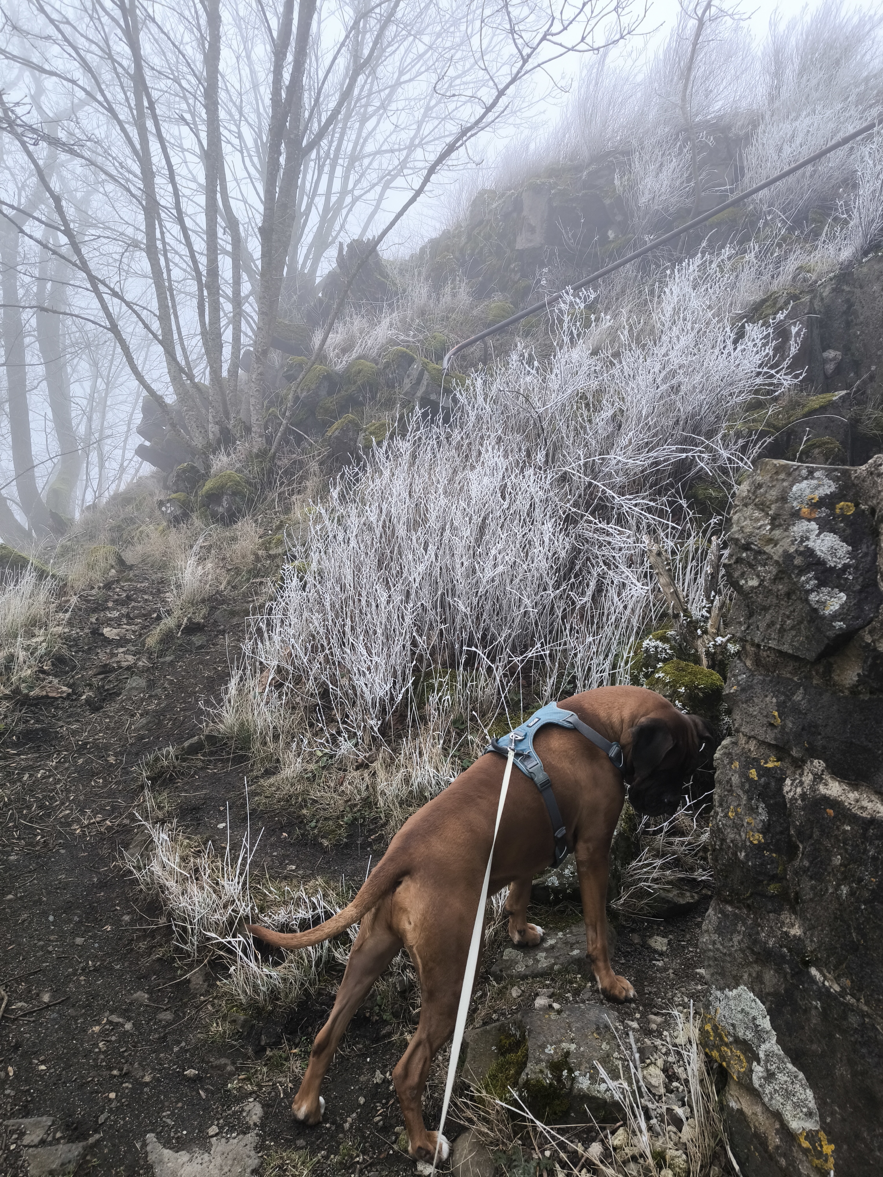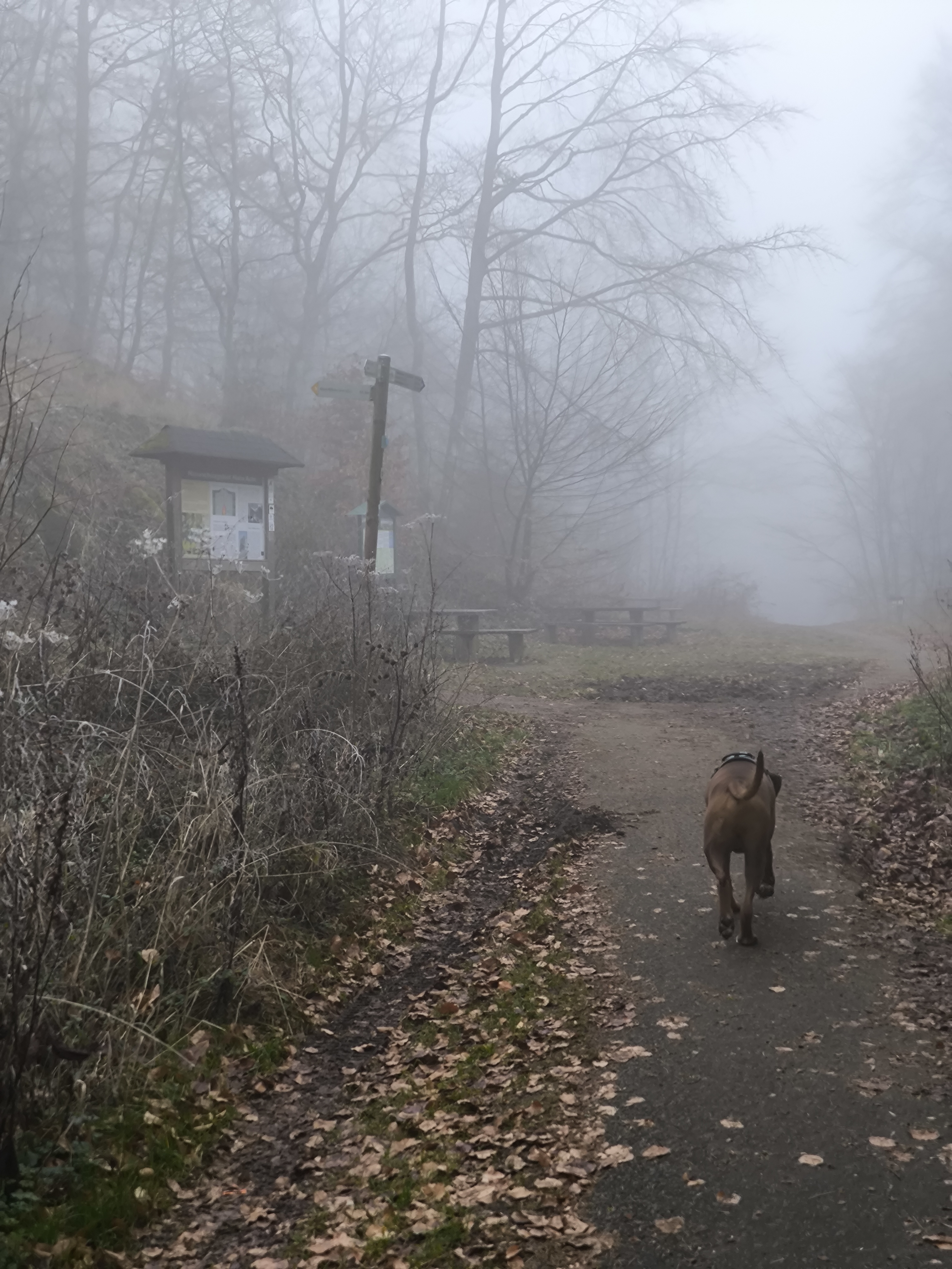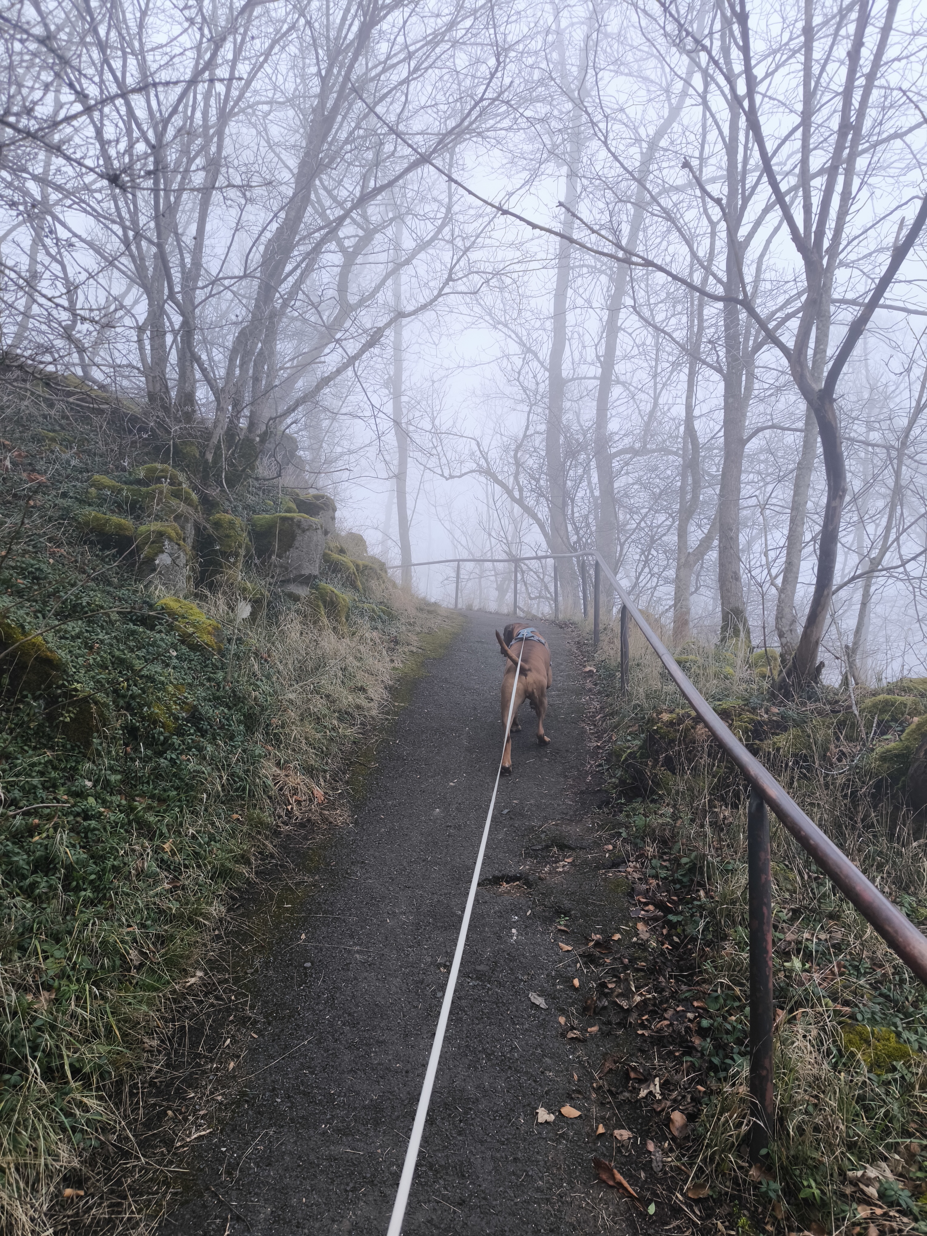 Manchmal braucht es keinen Sonnenschein, um eine richtig gute Wanderung zu erleben. Manchmal reicht Nebel. Viel Nebel. Genau so begann unsere Tour hinauf zur Hohen Acht – mit Argus an meiner Seite, dem Pfadfinder auf vier Pfoten. 🐕