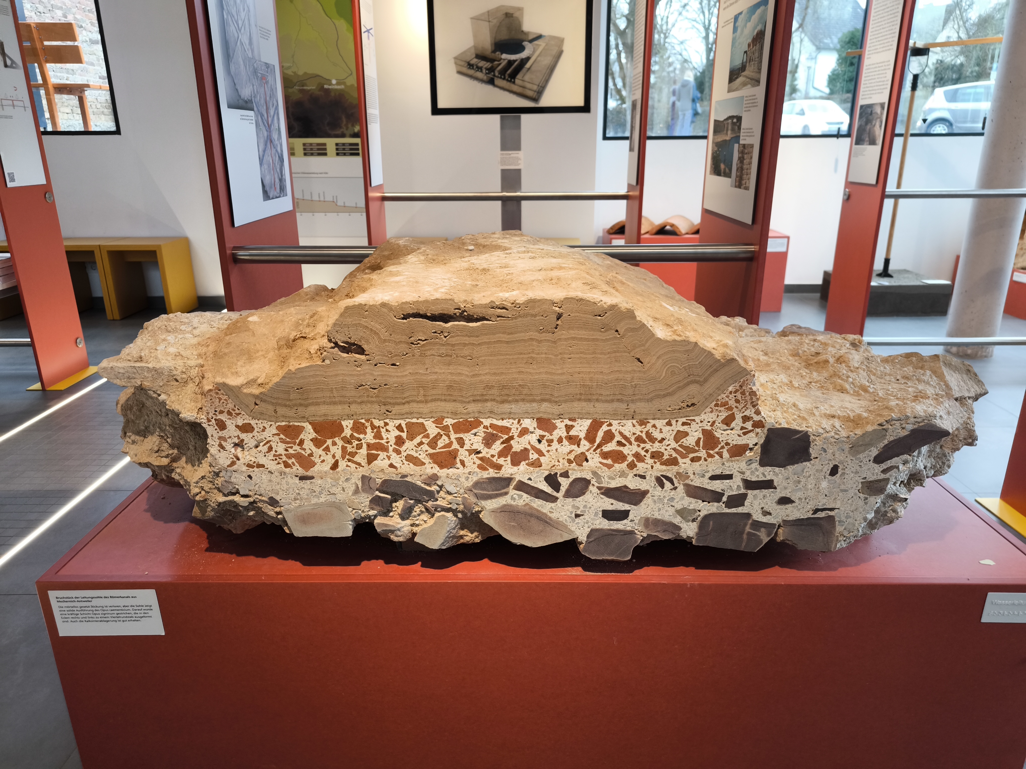 Besonders spannend: Steine von Druckleitungen, die zum römischen Legionslager in Bonn führten. Solche Druckleitungen sind nördlich der Alpen selten – hier sieht man, wie technisch fortgeschritten die Römer auch bei uns unterwegs waren.
