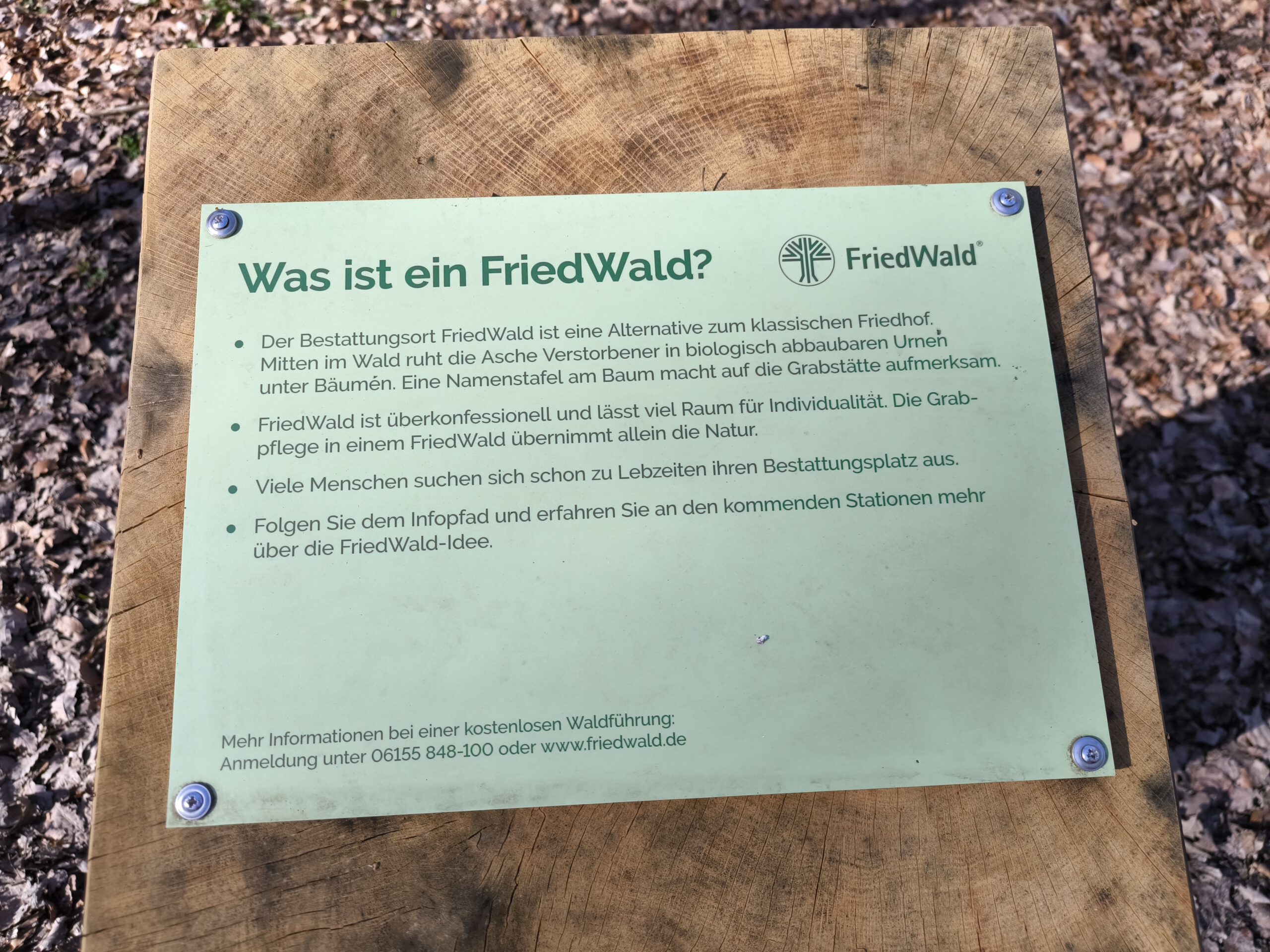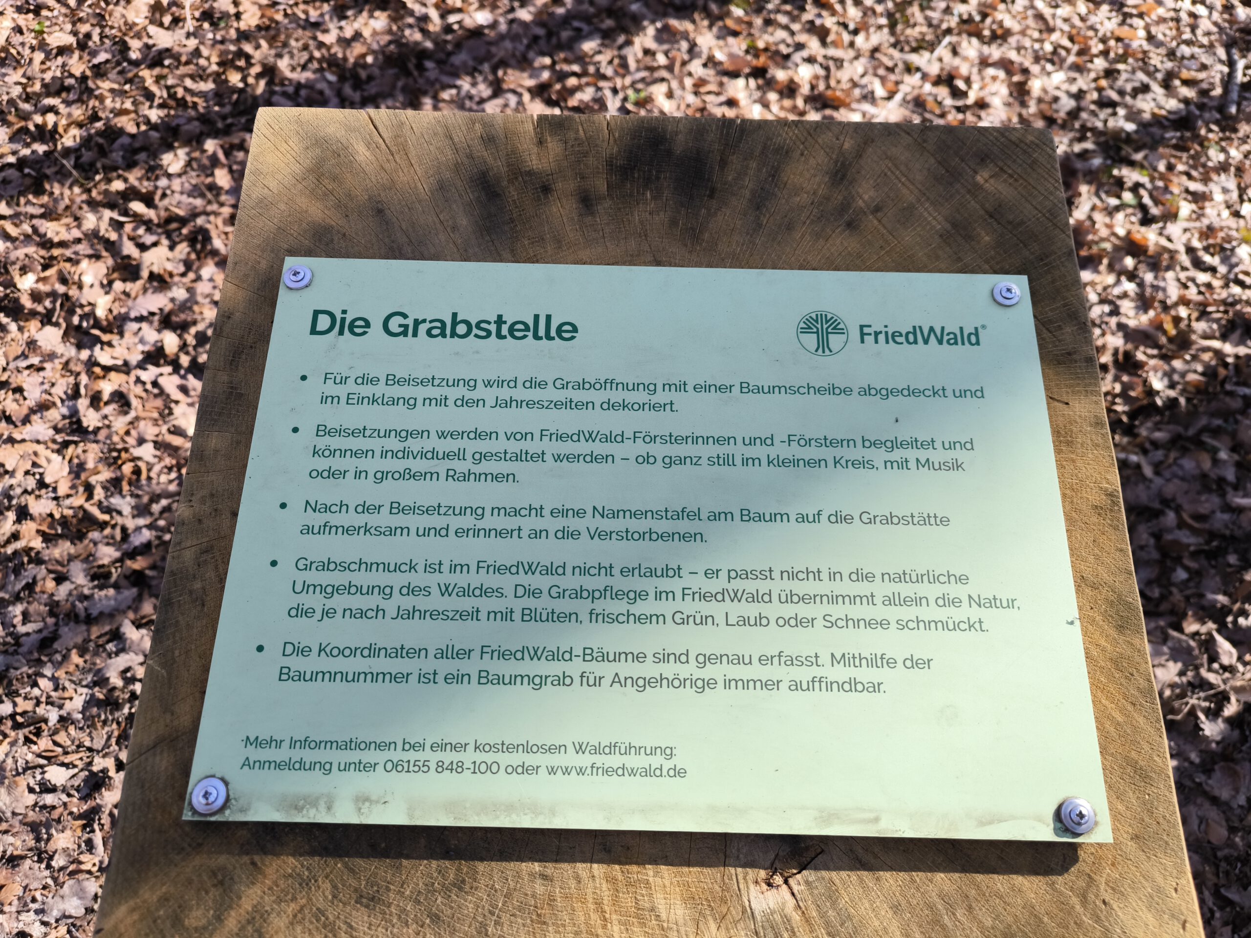 Was mir besonders gefallen hat: Der FriedWald fügt sich vollkommen unaufdringlich in die Umgebung ein. Wer hier spazieren geht, hat nicht das Gefühl, auf einem klassischen Friedhof zu sein, sondern in einem ganz normalen Wald – nur eben mit einer besonderen Bedeutung.